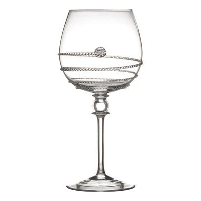 4.5 W x 8.75 H. The Amalia Collection is intricately designed, both delicate and striking. Our wine glass is perfect for the rich fruit of wines such as Pinot Noir, Shiraz and Cotes du Rhone.