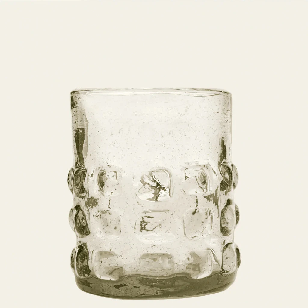 - Each glass is handmade; size and color will vary slightly.