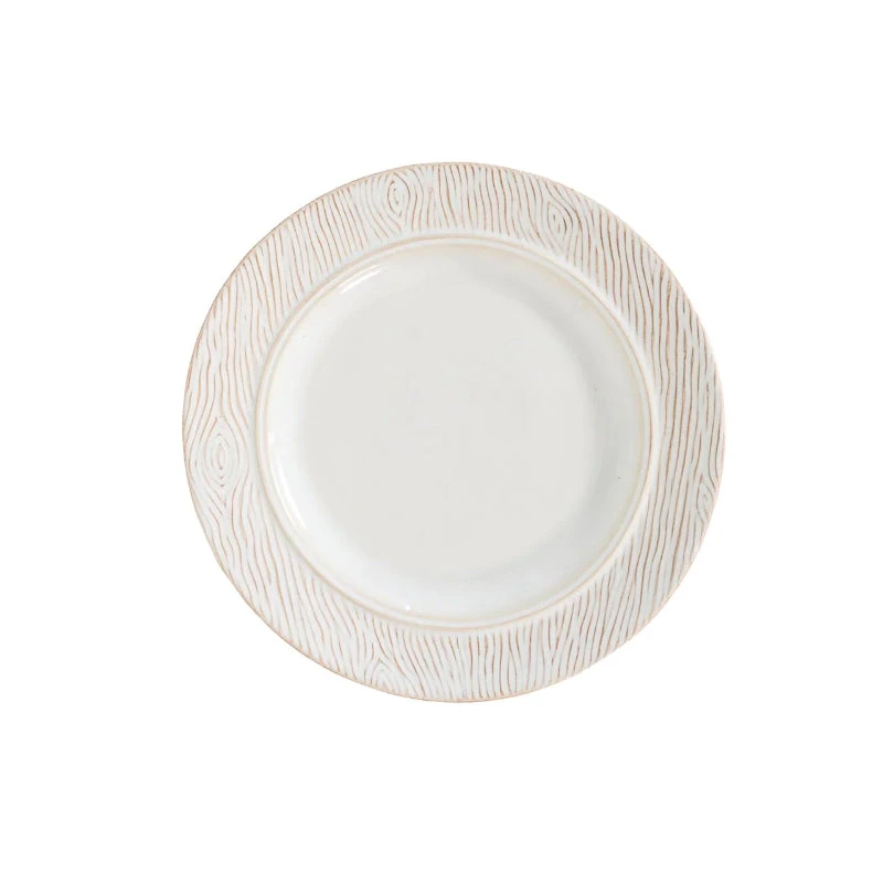 Inspired by the oldest grove of oak trees in England’s Blenheim Park, this woodgrain textured collection is rendered in a fresh and peaceful palette of creams and warm browns, with our signature whitewash glaze and a patina to highlight the beautifully rich motif. Equally idyllic and chic, this versatile plate makes an eye-catching layering piece with other patterns and collections, and serves up side dishes, canapés, and nibbles with easy style and grace.
