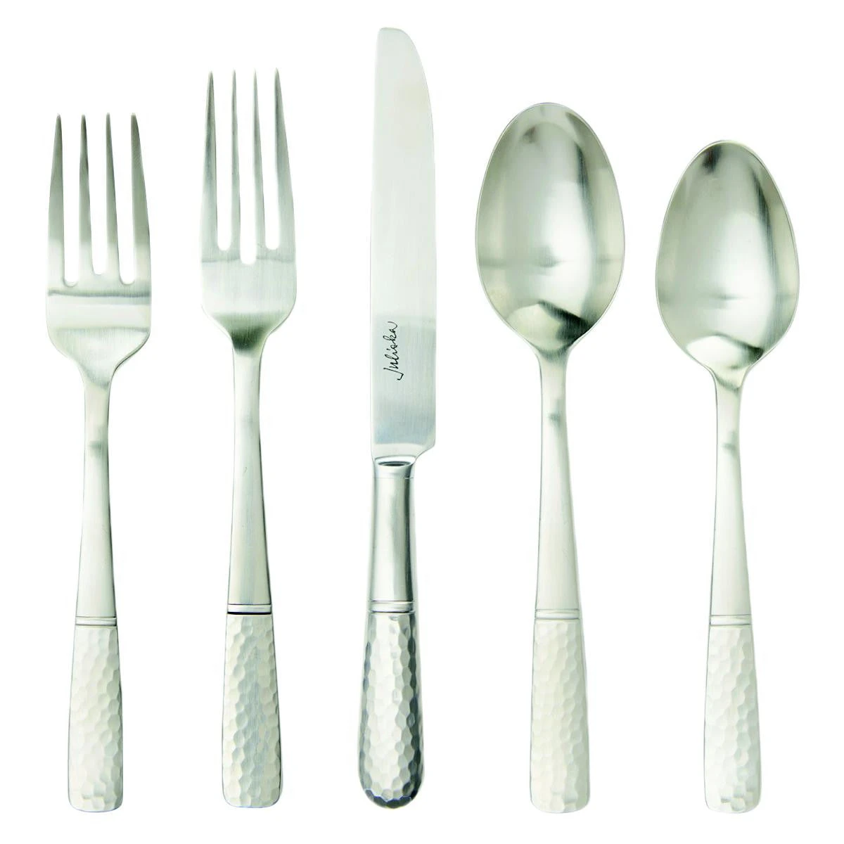 The secret ingredient to pulling together a finished look for any table, flatware is a staple piece and statement jewelry all rolled into one. Inspired by the moment dappled water reaches the shoreline, our carine flatware features a handle that is divided into two contrasting textures – shimmer water meeting smooth earth.Â