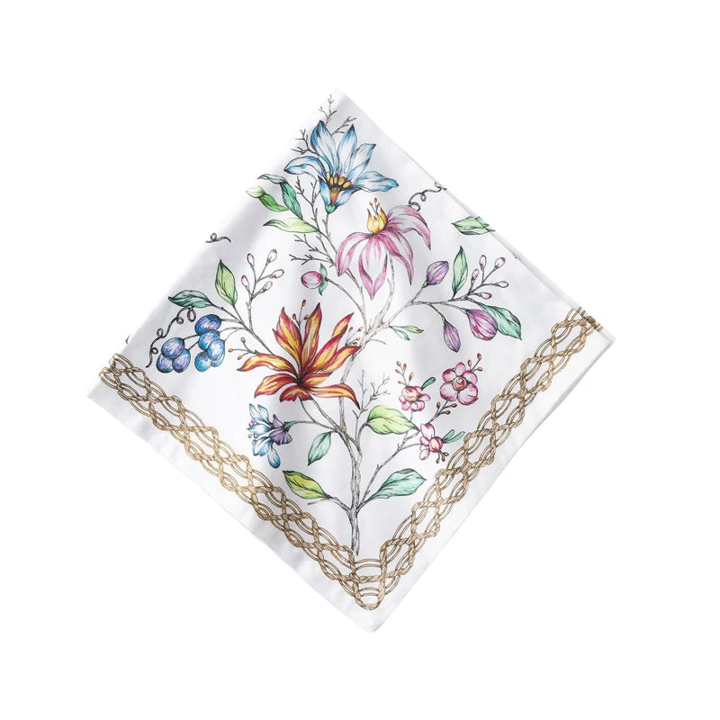 Inspired by a lush European countryside, this collection showcases an enchanting floral pattern on a 100% cotton, digitally printed napkin.