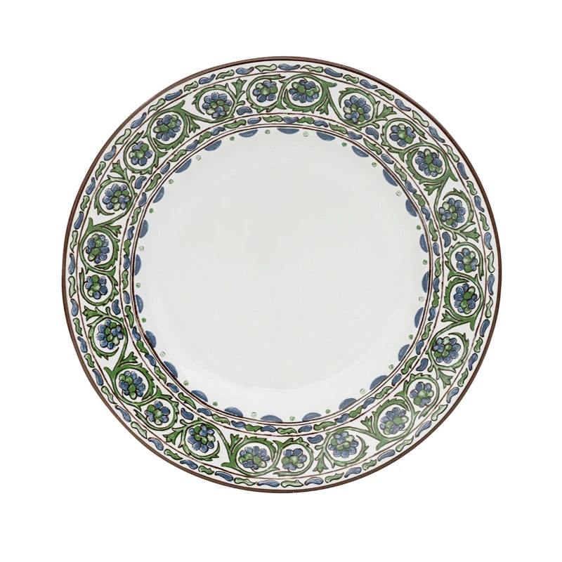 Juliska and Veronica Beard bring you a collaboration of dinnerware inspired by the colors and patterns of the Iberian coast. This dinner plate is banded with watercolored artwork evoking bohemian style.