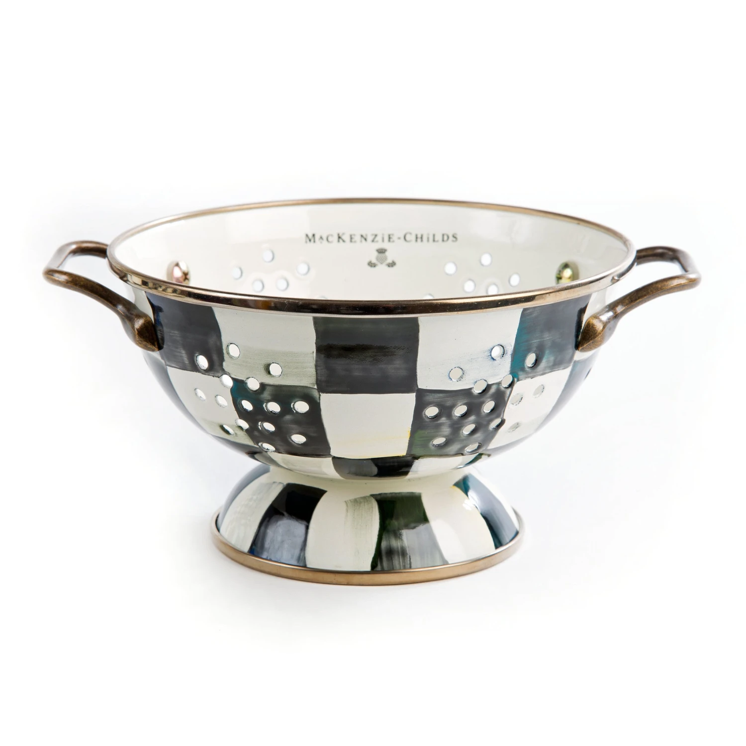 Give stainless steel’s impersonal style and plastic’s halfhearted work ethic the pink slip because there’s a commanding new sous chef in town! For kitchen preparations with personality, look no further than the Large Courtly Check Enamel Colander. The hand-painted enamel checks and antiqued brass handles gives some pizzazz to polishing potatoes and sass to straining salads. Fill with veggies grown in your own garden or clementines for a perfect hostess gift.Â