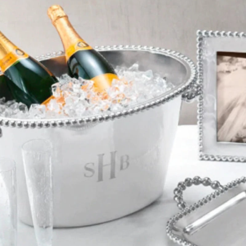 Description: We have a gift for tradition-reimagined in the String of Pearls collection. Beaded trim and handles add style and function to the Pearled Double Ice Bucket, which is sure to make a statement in any home!