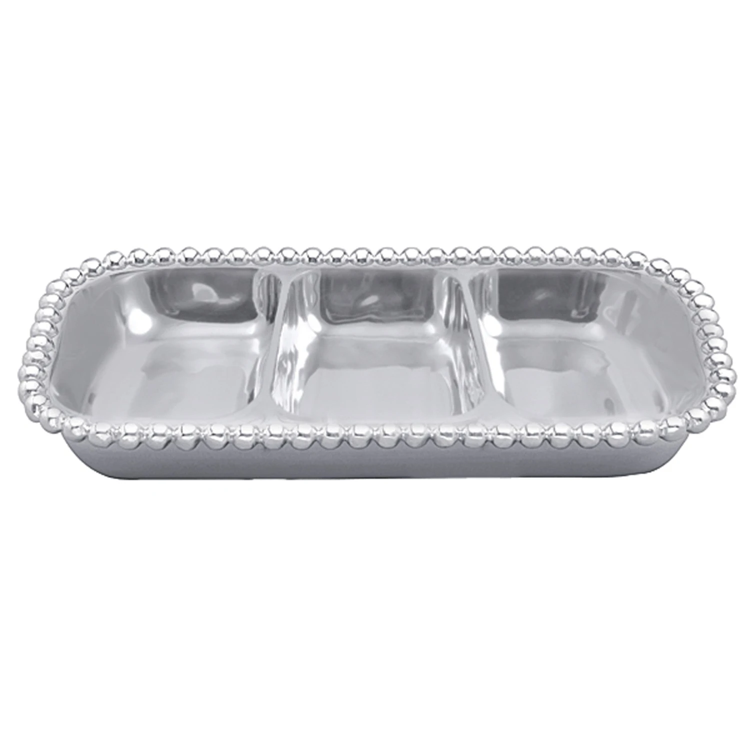 Description: We have a gift for tradition-reimagined in our String of Pearls collection. The Pearled Small Three-Section Server is a classic piece for any regular entertainer