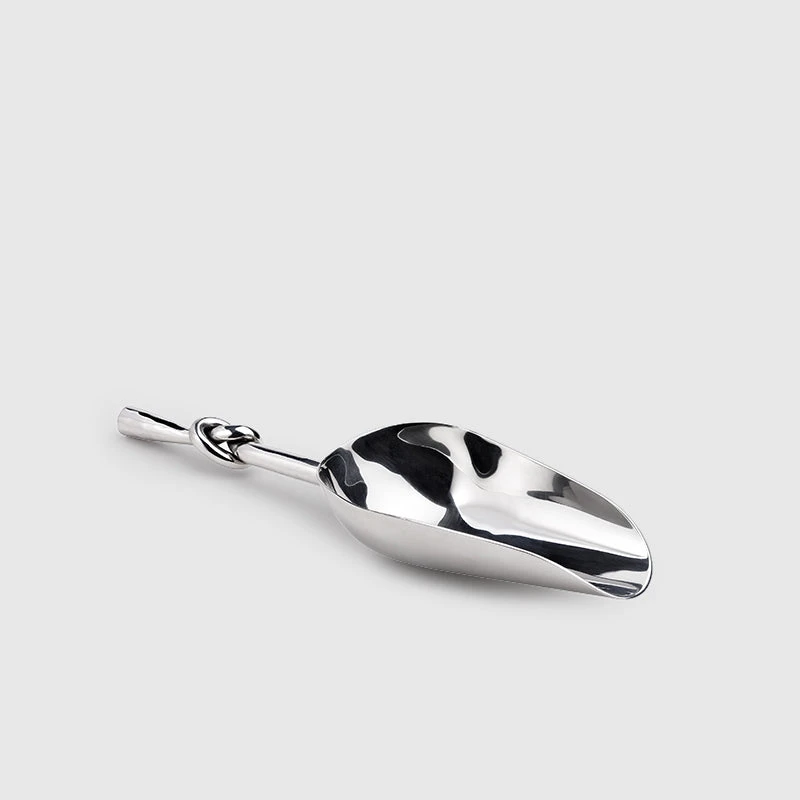 Knotted ice scoop by Mary Jurek is a tool mandatory for every complete barware collection—in stainless steel, ice slides easily into a glass for perfect servings every time.