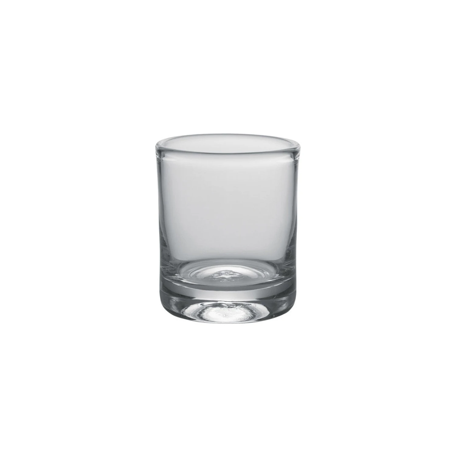 The simple but classic whiskey glass features clean lines, a solid base, and a wide rim.