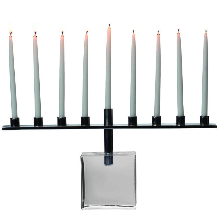 A solid, distinctive, meticulous handblown glass base supports clean lines of polished metal. The Woodbury Menorah is worthy of holiday your celebration.